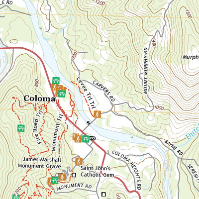 A digital topographic map of Coloma in California produced by the United States Geological Survey (USGS) in 2021. The map is part of the National Map series of 7.5 minute quadrangle maps. It shows contour lines, place names, water bodies and roads. Map services and data available from U.S. Geolog...