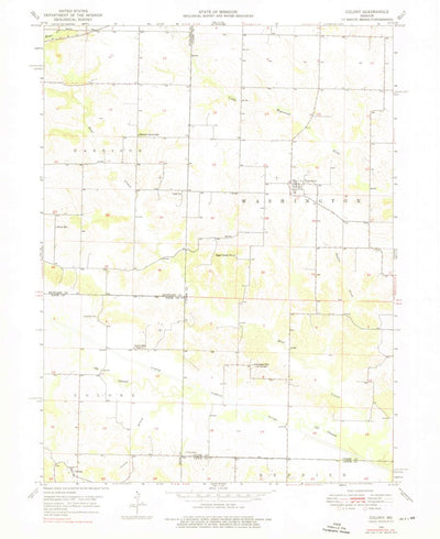 A 1950 historical topographic map of Colony in Missouri produced by the United States Geological Survey (USGS). It shows contour lines, place names, water bodies and roads. Map services and data available from U.S. Geological Survey, National Geospatial Program. Map was obtained from https://www....