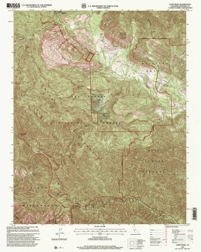 A 1995 historical topographic map of Cone Peak in California produced by the United States Geological Survey (USGS). It shows contour lines, place names, water bodies and roads. Map services and data available from U.S. Geological Survey, National Geospatial Program. Map was obtained from https:/...