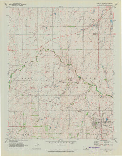 A 1971 historical topographic map of Conway Springs in Kansas produced by the United States Geological Survey (USGS). It shows contour lines, place names, water bodies and roads. Map services and data available from U.S. Geological Survey, National Geospatial Program. Map was obtained from https:...