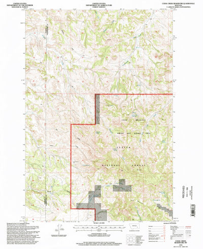 A 1995 historical topographic map of Cook Creek Reservoir in Montana produced by the United States Geological Survey (USGS). It shows contour lines, place names, water bodies and roads. Map services and data available from U.S. Geological Survey, National Geospatial Program. Map was obtained from...