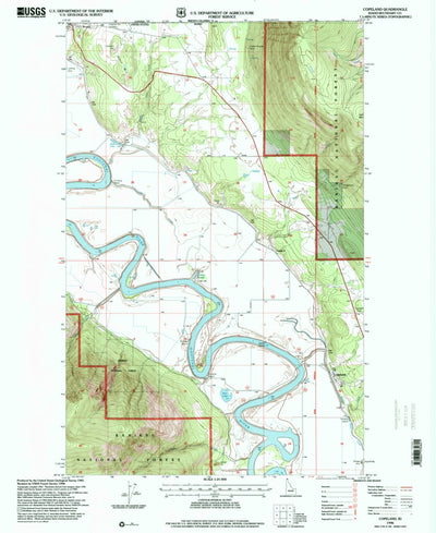A 1996 historical topographic map of Copeland in Idaho produced by the United States Geological Survey (USGS). It shows contour lines, place names, water bodies and roads. Map services and data available from U.S. Geological Survey, National Geospatial Program. Map was obtained from https://www.s...