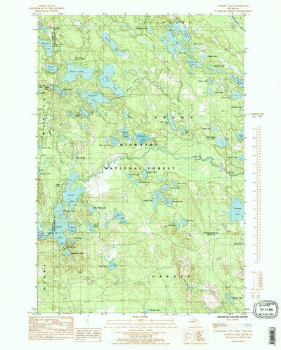 A 1985 historical topographic map of Corner Lake in Michigan produced by the United States Geological Survey (USGS). It shows contour lines, place names, water bodies and roads. Map services and data available from U.S. Geological Survey, National Geospatial Program. Map was obtained from https:/...