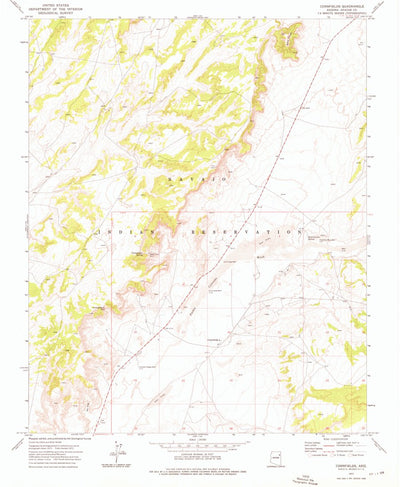 A 1972 historical topographic map of Cornfields in Arizona produced by the United States Geological Survey (USGS). It shows contour lines, place names, water bodies and roads. Map services and data available from U.S. Geological Survey, National Geospatial Program. Map was obtained from https://w...