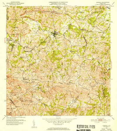 A 1953 historical topographic map of Corozal in Puerto Rico produced by the United States Geological Survey (USGS). It shows contour lines, place names, water bodies and roads. Map services and data available from U.S. Geological Survey, National Geospatial Program. Map was obtained from https://...