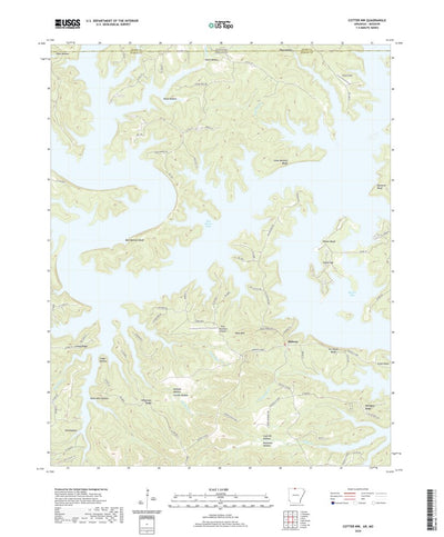 A digital topographic map of Cotter NW in Arkansas produced by the United States Geological Survey (USGS) in 2020. The map is part of the National Map series of 7.5 minute quadrangle maps. It shows contour lines, place names, water bodies and roads. Map services and data available from U.S. Geolo...
