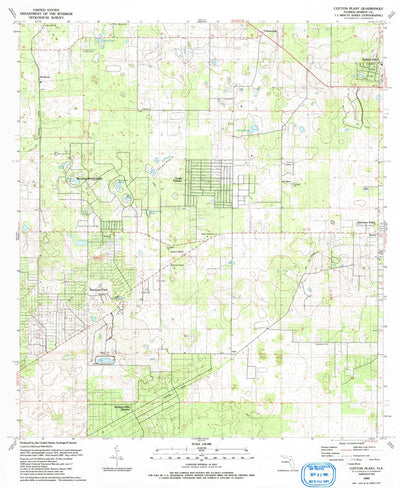 A 1991 historical topographic map of Cotton Plant in Florida produced by the United States Geological Survey (USGS). It shows contour lines, place names, water bodies and roads. Map services and data available from U.S. Geological Survey, National Geospatial Program. Map was obtained from https:/...