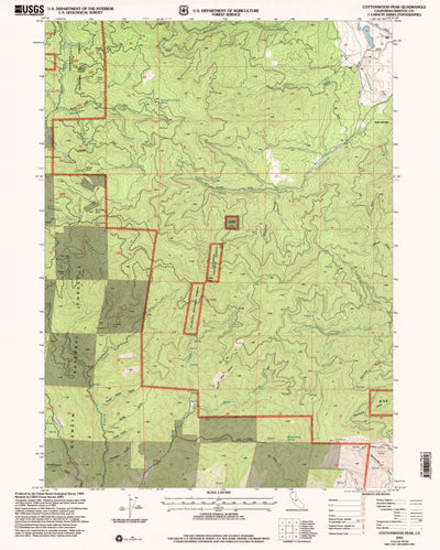 A 2001 historical topographic map of Cottonwood Peak in California produced by the United States Geological Survey (USGS). It shows contour lines, place names, water bodies and roads. Map services and data available from U.S. Geological Survey, National Geospatial Program. Map was obtained from h...