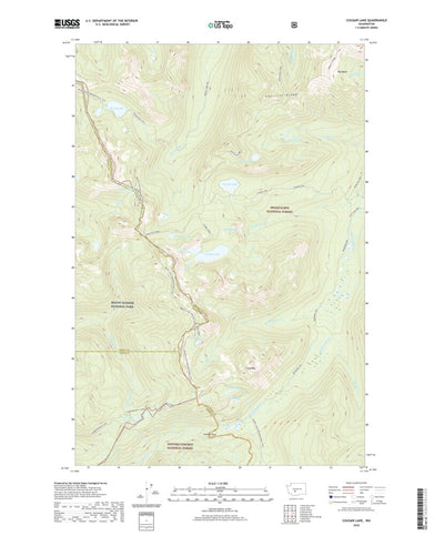 A digital topographic map of Cougar Lake in Washington produced by the United States Geological Survey (USGS) in 2020. The map is part of the National Map series of 7.5 minute quadrangle maps. It shows contour lines, place names, water bodies and roads. Map services and data available from U.S. G...