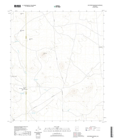 A digital topographic map of Cow Springs Mountain in New Mexico produced by the United States Geological Survey (USGS) in 2020. The map is part of the National Map series of 7.5 minute quadrangle maps. It shows contour lines, place names, water bodies and roads. Map services and data available fr...
