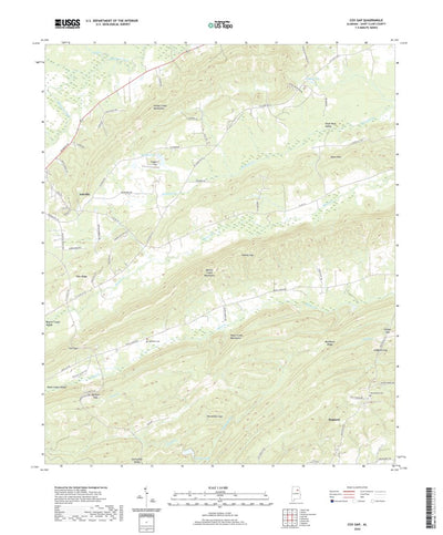 A digital topographic map of Cox Gap in Alabama produced by the United States Geological Survey (USGS) in 2020. The map is part of the National Map series of 7.5 minute quadrangle maps. It shows contour lines, place names, water bodies and roads. Map services and data available from U.S. Geologic...