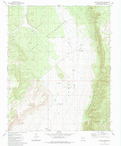A 1981 historical topographic map of Crater Canyon in Arizona produced by the United States Geological Survey (USGS). It shows contour lines, place names, water bodies and roads. Map services and data available from U.S. Geological Survey, National Geospatial Program. Map was obtained from https:...
