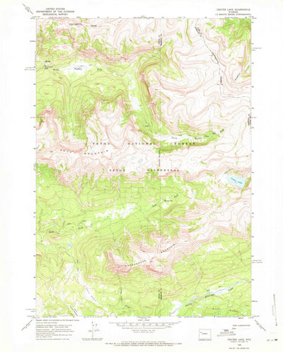 A 1968 historical topographic map of Crater Lake in Wyoming produced by the United States Geological Survey (USGS). It shows contour lines, place names, water bodies and roads. Map services and data available from U.S. Geological Survey, National Geospatial Program. Map was obtained from https://...