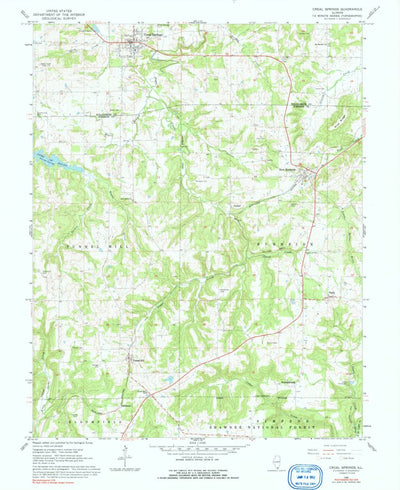 A 1966 historical topographic map of Creal Springs in Illinois produced by the United States Geological Survey (USGS). It shows contour lines, place names, water bodies and roads. Map services and data available from U.S. Geological Survey, National Geospatial Program. Map was obtained from https...