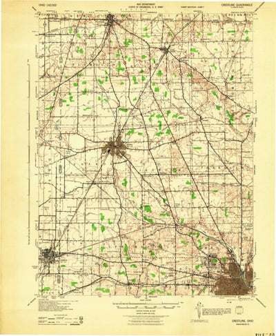 A 1943 historical topographic map of Crestline in Ohio produced by the United States Geological Survey (USGS). It shows contour lines, place names, water bodies and roads. Map services and data available from U.S. Geological Survey, National Geospatial Program. Map was obtained from https://www.s...