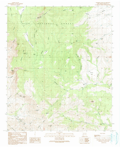 A 1990 historical topographic map of Crookson Peak in New Mexico produced by the United States Geological Survey (USGS). It shows contour lines, place names, water bodies and roads. Map services and data available from U.S. Geological Survey, National Geospatial Program. Map was obtained from htt...