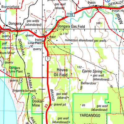 This is part of the Geoscience Australia 250,000 National Topographic Map Series covering the Dangara region and the surrounding area. © Commonwealth of Australia (Geoscience Australia) 2010. This material is released under the Creative Commons Attribution 3.0 Australia Licence.