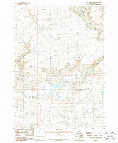 A 1986 historical topographic map of Davis Mountain SW in Idaho produced by the United States Geological Survey (USGS). It shows contour lines, place names, water bodies and roads. Map services and data available from U.S. Geological Survey, National Geospatial Program. Map was obtained from http...