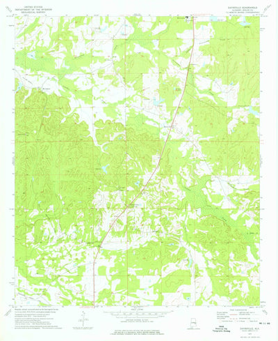 A 1973 historical topographic map of Davisville in Alabama produced by the United States Geological Survey (USGS). It shows contour lines, place names, water bodies and roads. Map services and data available from U.S. Geological Survey, National Geospatial Program. Map was obtained from https://w...