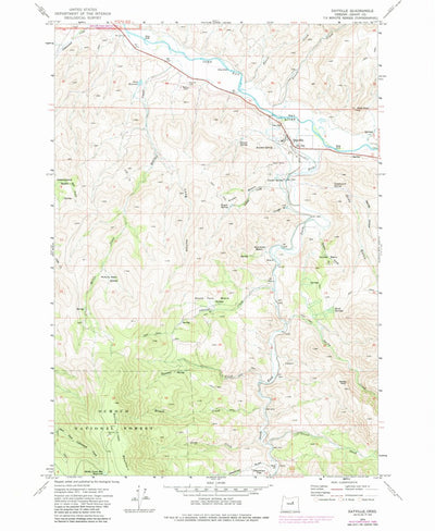 A 1972 historical topographic map of Dayville in Oregon produced by the United States Geological Survey (USGS). It shows contour lines, place names, water bodies and roads. Map services and data available from U.S. Geological Survey, National Geospatial Program. Map was obtained from https://www....
