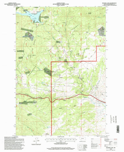 A 1996 historical topographic map of Delmoe Lake in Montana produced by the United States Geological Survey (USGS). It shows contour lines, place names, water bodies and roads. Map services and data available from U.S. Geological Survey, National Geospatial Program. Map was obtained from https://...