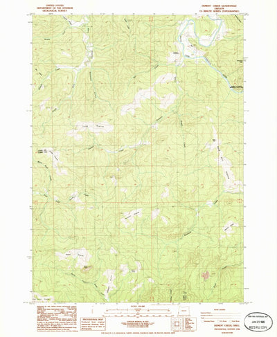 A 1986 historical topographic map of Dement Creek in Oregon produced by the United States Geological Survey (USGS). It shows contour lines, place names, water bodies and roads. Map services and data available from U.S. Geological Survey, National Geospatial Program. Map was obtained from https://...