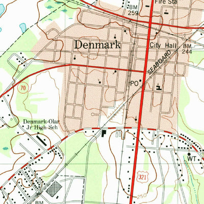 A 1979 historical topographic map of Denmark in South Carolina produced by the United States Geological Survey (USGS). It shows contour lines, place names, water bodies and roads. Map services and data available from U.S. Geological Survey, National Geospatial Program. Map was obtained from https...