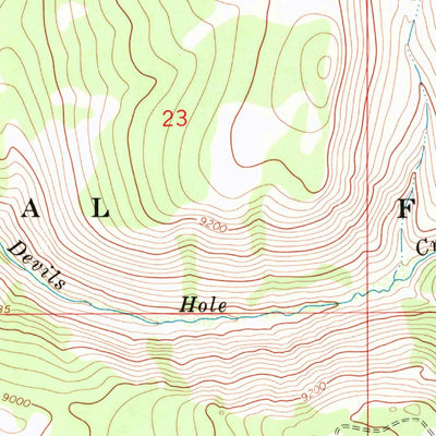 A 1967 historical topographic map of Devils Hole Creek in Wyoming produced by the United States Geological Survey (USGS). It shows contour lines, place names, water bodies and roads. Map services and data available from U.S. Geological Survey, National Geospatial Program. Map was obtained from ht...