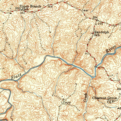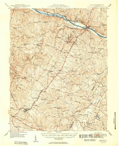 A 1950 historical topographic map of Dillwyn in Virginia produced by the United States Geological Survey (USGS). It shows contour lines, place names, water bodies and roads. Map services and data available from U.S. Geological Survey, National Geospatial Program. Map was obtained from https://www...