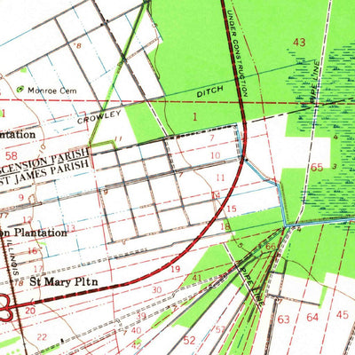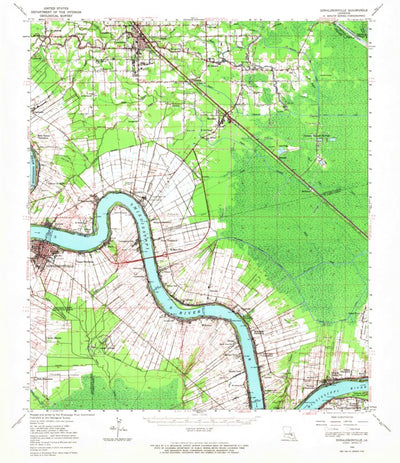 A 1962 historical topographic map of Donaldsonville in Louisiana produced by the United States Geological Survey (USGS). It shows contour lines, place names, water bodies and roads. Map services and data available from U.S. Geological Survey, National Geospatial Program. Map was obtained from htt...