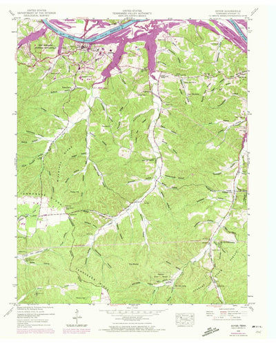 A 1950 historical topographic map of Dover in Tennessee produced by the United States Geological Survey (USGS). It shows contour lines, place names, water bodies and roads. Map services and data available from U.S. Geological Survey, National Geospatial Program. Map was obtained from https://www....