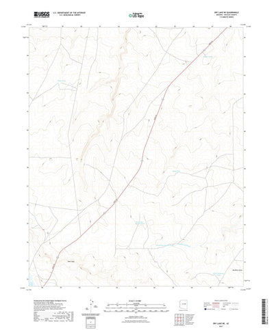 A digital topographic map of Dry Lake NE in Arizona produced by the United States Geological Survey (USGS) in 2021. The map is part of the National Map series of 7.5 minute quadrangle maps. It shows contour lines, place names, water bodies and roads. Map services and data available from U.S. Geol...