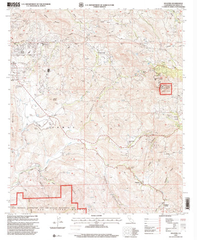 A 1997 historical topographic map of Dulzura in California produced by the United States Geological Survey (USGS). It shows contour lines, place names, water bodies and roads. Map services and data available from U.S. Geological Survey, National Geospatial Program. Map was obtained from https://w...