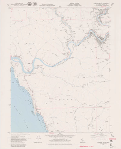A 1952 historical topographic map of Duncans Mills in California produced by the United States Geological Survey (USGS). It shows contour lines, place names, water bodies and roads. Map services and data available from U.S. Geological Survey, National Geospatial Program. Map was obtained from htt...