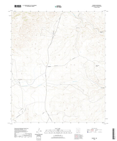 A digital topographic map of Dunken in New Mexico produced by the United States Geological Survey (USGS) in 2020. The map is part of the National Map series of 7.5 minute quadrangle maps. It shows contour lines, place names, water bodies and roads. Map services and data available from U.S. Geolog...