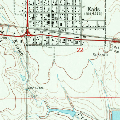 A 1968 historical topographic map of Eads in Colorado produced by the United States Geological Survey (USGS). It shows contour lines, place names, water bodies and roads. Map services and data available from U.S. Geological Survey, National Geospatial Program. Map was obtained from https://www.sc...