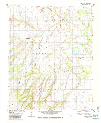 A 1985 historical topographic map of Eagle City in Oklahoma produced by the United States Geological Survey (USGS). It shows contour lines, place names, water bodies and roads. Map services and data available from U.S. Geological Survey, National Geospatial Program. Map was obtained from https://...