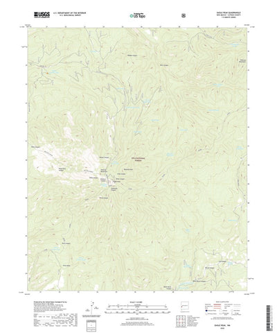A digital topographic map of Eagle Peak in New Mexico produced by the United States Geological Survey (USGS) in 2020. The map is part of the National Map series of 7.5 minute quadrangle maps. It shows contour lines, place names, water bodies and roads. Map services and data available from U.S. Ge...