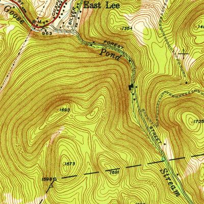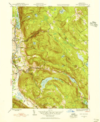 A 1945 historical topographic map of East Lee in Massachusetts produced by the United States Geological Survey (USGS). It shows contour lines, place names, water bodies and roads. Map services and data available from U.S. Geological Survey, National Geospatial Program. Map was obtained from https...
