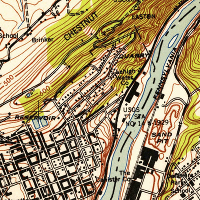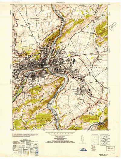 A 1953 historical topographic map of Easton in Pennsylvania produced by the United States Geological Survey (USGS). It shows contour lines, place names, water bodies and roads. Map services and data available from U.S. Geological Survey, National Geospatial Program. Map was obtained from https://...