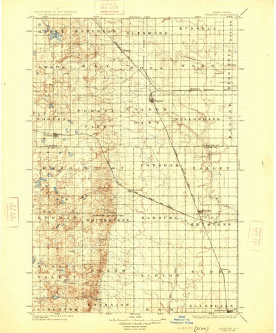 A 1925 historical topographic map of Edgeley in North Dakota produced by the United States Geological Survey (USGS). It shows contour lines, place names, water bodies and roads. Map services and data available from U.S. Geological Survey, National Geospatial Program. Map was obtained from https:/...