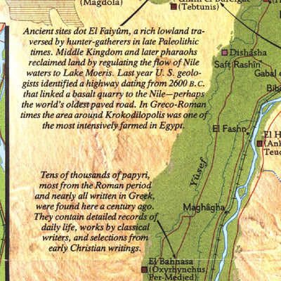 Explore the wonder and mysteries of the northern Nile Valley with this educational map published in January 1995 with an additional map of the southern Nile Valley and an article entitled "Age of the Pyramids: Egypt's Old Kingdom." Both a modern map of the rich Nile Valley and a guide through Egy...