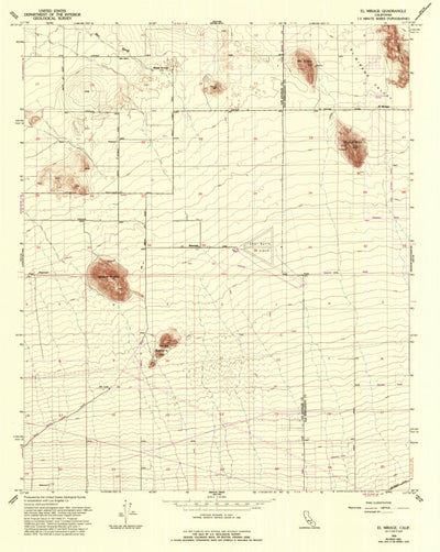 A 1956 historical topographic map of El Mirage in California produced by the United States Geological Survey (USGS). It shows contour lines, place names, water bodies and roads. Map services and data available from U.S. Geological Survey, National Geospatial Program. Map was obtained from https:/...