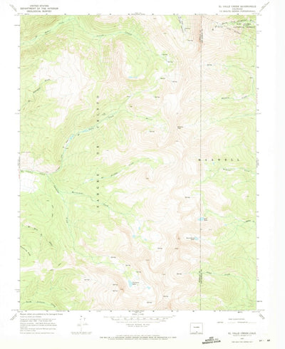 A 1967 historical topographic map of El Valle Creek in Colorado produced by the United States Geological Survey (USGS). It shows contour lines, place names, water bodies and roads. Map services and data available from U.S. Geological Survey, National Geospatial Program. Map was obtained from http...