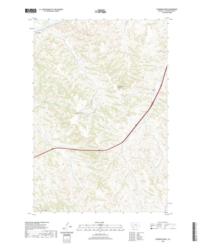 A digital topographic map of Eldering Ranch in Montana produced by the United States Geological Survey (USGS) in 2020. The map is part of the National Map series of 7.5 minute quadrangle maps. It shows contour lines, place names, water bodies and roads. Map services and data available from U.S. G...