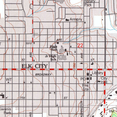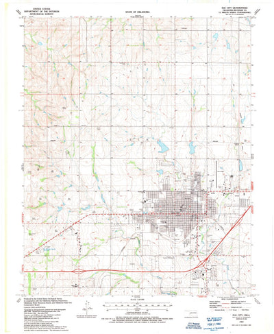 A 1987 historical topographic map of Elk City in Oklahoma produced by the United States Geological Survey (USGS). It shows contour lines, place names, water bodies and roads. Map services and data available from U.S. Geological Survey, National Geospatial Program. Map was obtained from https://ww...