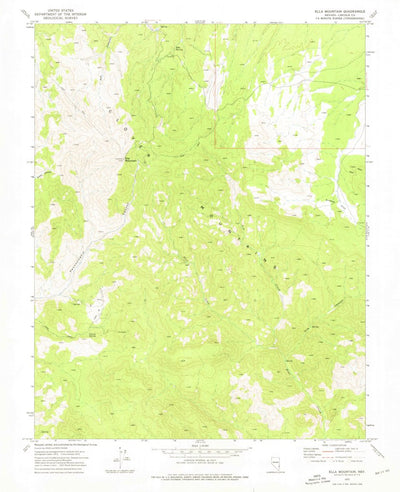 A 1973 historical topographic map of Ella Mountain in Nevada produced by the United States Geological Survey (USGS). It shows contour lines, place names, water bodies and roads. Map services and data available from U.S. Geological Survey, National Geospatial Program. Map was obtained from https:/...