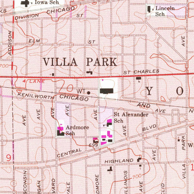 A 1963 historical topographic map of Elmhurst in Illinois produced by the United States Geological Survey (USGS). It shows contour lines, place names, water bodies and roads. Map services and data available from U.S. Geological Survey, National Geospatial Program. Map was obtained from https://ww...