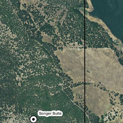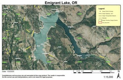 New 2018 Aerial Photo Imagery of Emigrant Lake, Oregon including labels for road systems, township, range & survey layer, and both current and historical points of interest on a 11x17 Sheet.