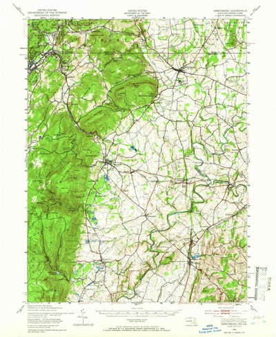 A 1943 historical topographic map of Emmitsburg in Maryland produced by the United States Geological Survey (USGS). It shows contour lines, place names, water bodies and roads. Map services and data available from U.S. Geological Survey, National Geospatial Program. Map was obtained from https://...